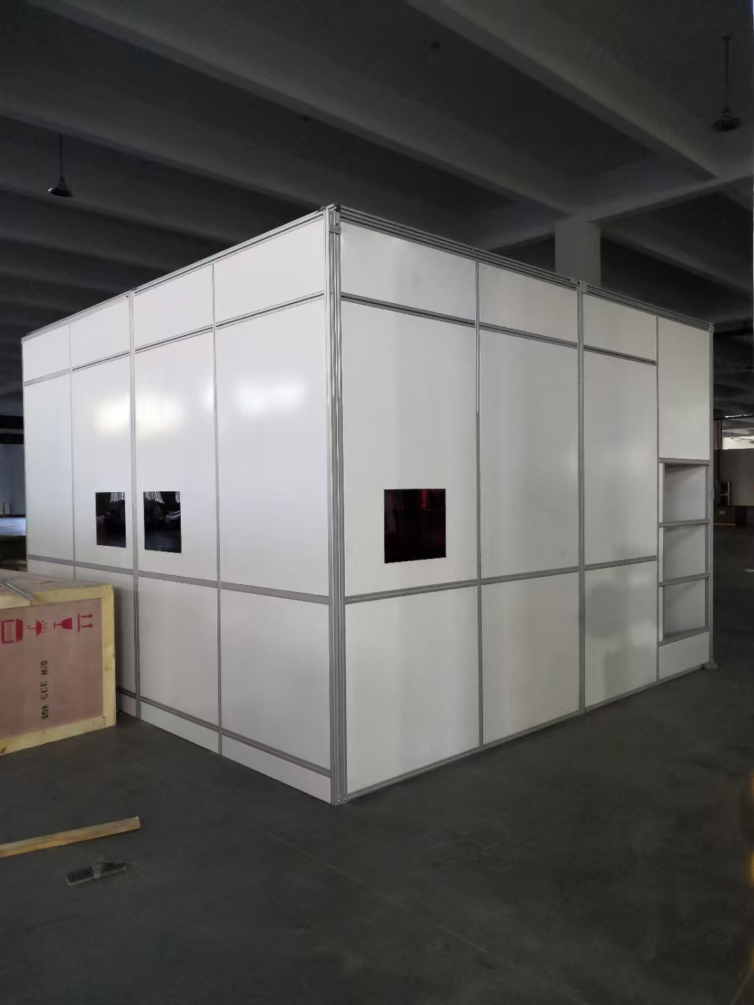 材料:通常采用金属夹芯板(如岩棉夹芯板,兼具保温、防火、隔音功能)或工业钢板搭建。墙壁表面光滑,不易积灰,易于清洁。