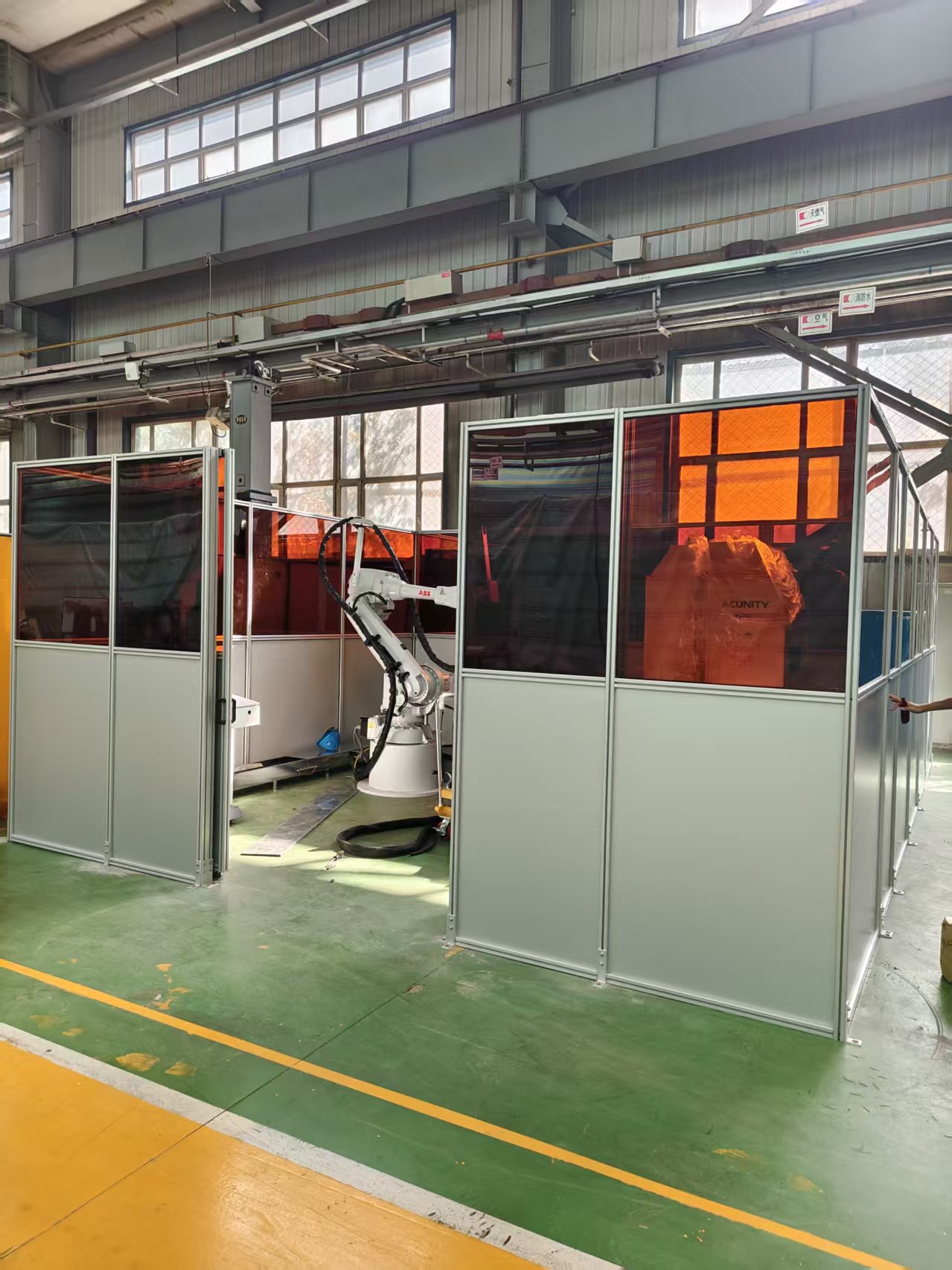 阻挡危险物飞出:机器人操作(如搬运、打磨、焊接)可能发生零件、工具或碎屑意外飞出,围栏能有效阻挡这些飞行物。